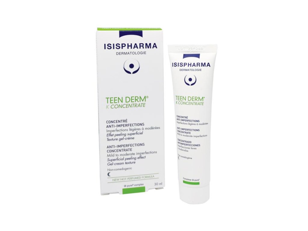 Získejte kontrolu nad svou problematickou pletí! Koncentrát proti nedokonalostem K Concentrate TEEN DERM od ISISPHARMA vám pomůže dosáhnout bezchybné pokožky. Jeho složení obsahuje čisticí látky, které efektivně odstraňují nečistoty, jež mohou ucpávat póry a vést ke vzniku akné. Dále reguluje tvorbu kožního mazu, což pomáhá předcházet ucpávání pórů a nežádoucímu lesku na obličeji. Zjemňuje texturu pleti a snižuje výskyt pupínků. Má lehkou gelovou konzistenci, která neucpává póry. Dermatologicky testováno pro vynikající snášenlivost.