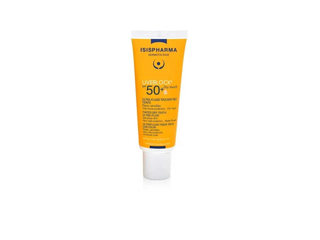 Užívejte si sluníčka s vědomím, že vaše pokožka je chráněná! ISISPHARMA UVEBLOCK Dry touch SPF50+ ultra-fluidní krém poskytuje velmi vysokou ochranu před slunečními paprsky díky patentovanému komplexu Sunstress Protect. Ultra tekutá nekomedogenní textura je přizpůsobena charakteru mastné pleti – rychle se vstřebává a poskytuje matující efekt.
