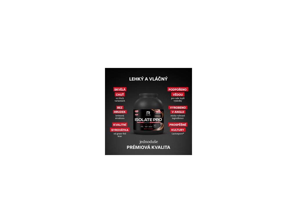 Isolate PRO není jen další syrovátkový izolát, který můžete dostat od jakékoli jiné značky. Je vyrobený z vysoce kvalitního zdroje, syrovátkového izolátu, který prochází dodatečnými procesy pro odstranění co nejvyššího množství tuku a sacharidů. Výsledkem je produkt, který je přibližně z 83 % čistý protein. Pokud tak hledáte cestu, pro co nejvyšší příjem proteinu bez tuku a sacharidů, je Isolate PRO ideální volba. Isolate PRO je velmi rychle absorbován v těle, je tak optimální pro regeneraci po tréninku, kdy tělo potřebuje rychle zdroj bílkoviny.