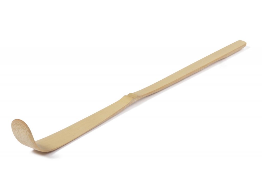 Bambusová lžička na tradiční přípravu čaje Matcha v Japonsku známá jako "Chashaku" slouží pro přesné odměření práškového čaje při přípravě nápoje.