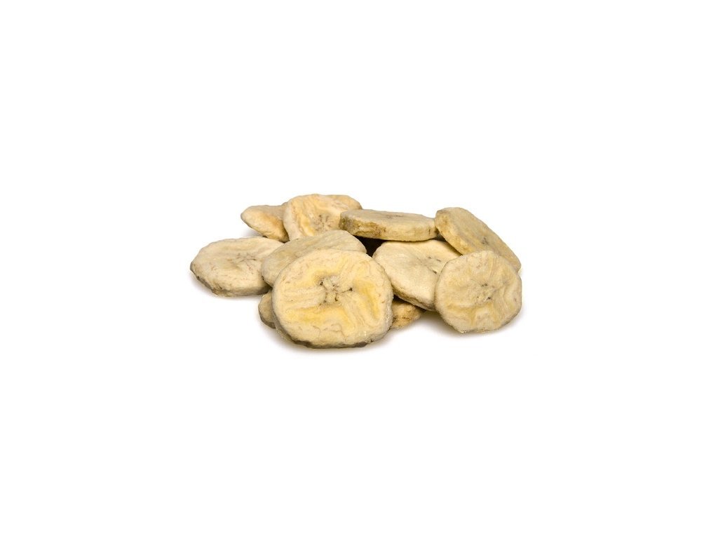 Lyofilizovaný banán je: 100 % banán, bez přísad a konzervantů , svěží, sladká a čistá chuť banánu, vlhkost méně jak 5%.