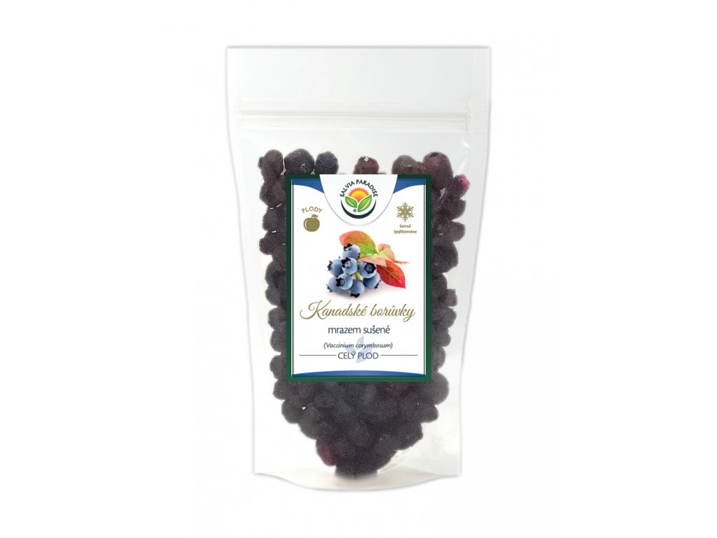 Mrazem sušené plody brusnice chocholičnaté známé též pod názvem kanadská borůvka. Pro kanadskou borůvku jsou charakteristické velké plody s výraznou borůvkovou chutí, která je k nerozeznání od lesních borůvek.