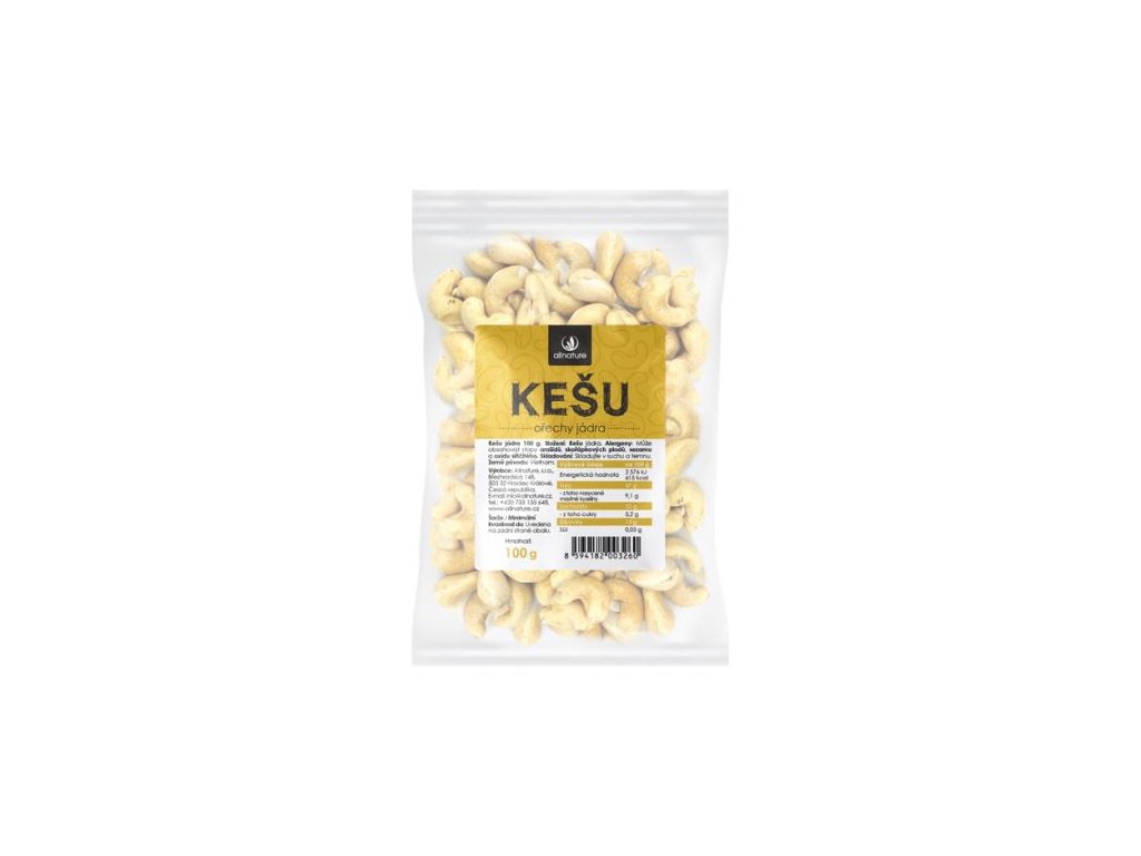 Kešu oříšky patří u nás k velmi oblíbeným produktů v pražené, solené nebo jiné podobě. Jako většina ořechů mají také vysoký podíl omega-3 mastných nenasycených kyselin. Snižují hladinu cholesterolu v krvi, pomahájí při špatném trávení a zlepšují paměť a myšlení.Složení: jádra kešu ořechů natural