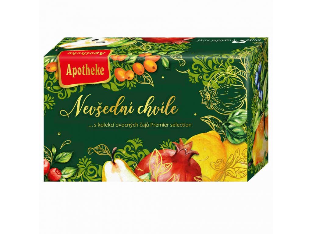 Dárkové kazety čajů Apotheke jsou dárkem, který skutečně potěší každého bez rozdílu věku. Díky velkému výběru můžete snadno nabídnout svým hostům, ať si vyberou čaj dle svého gusta. Kolekce v pěkné krabičce nabízí pestrou škálu nejrůznějších zajímavých i osvědčených chutí. Jedinečný výběr prémiových ovocných čajů v luxusním balení. Můžete si je vychutnat sami, nebo věnovat jako dárek Vašim blízkým. Balení obsahuje 6 druhů čajů, od každého druhu po 8ks.