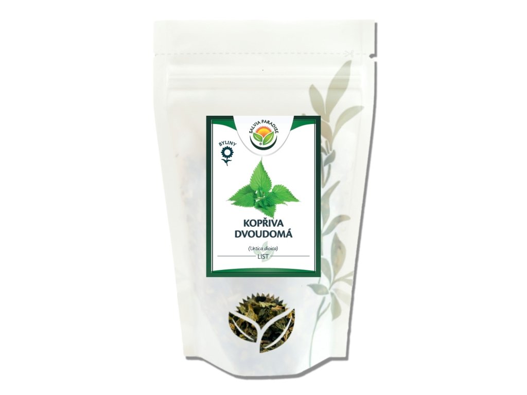 Salvia Paradise® dodává list kopřivy, který je ve fytoterapii doporučován pro podporu funkce ledvin a renální eliminace – vylučování vody z organismu. Je vhodný pro jedince trpící pocitem tzv. těžkých nohou, od kterého ulevuje a zároveň podporuje žilní zdraví. Kopřiva přispívá k normální činnosti kardiovaskulárního systému, prostaty a má vliv na přirozené zdraví kostí, vlasů a nehtů. Dále osvěžuje tělo, podporuje vitalitu a energii.
