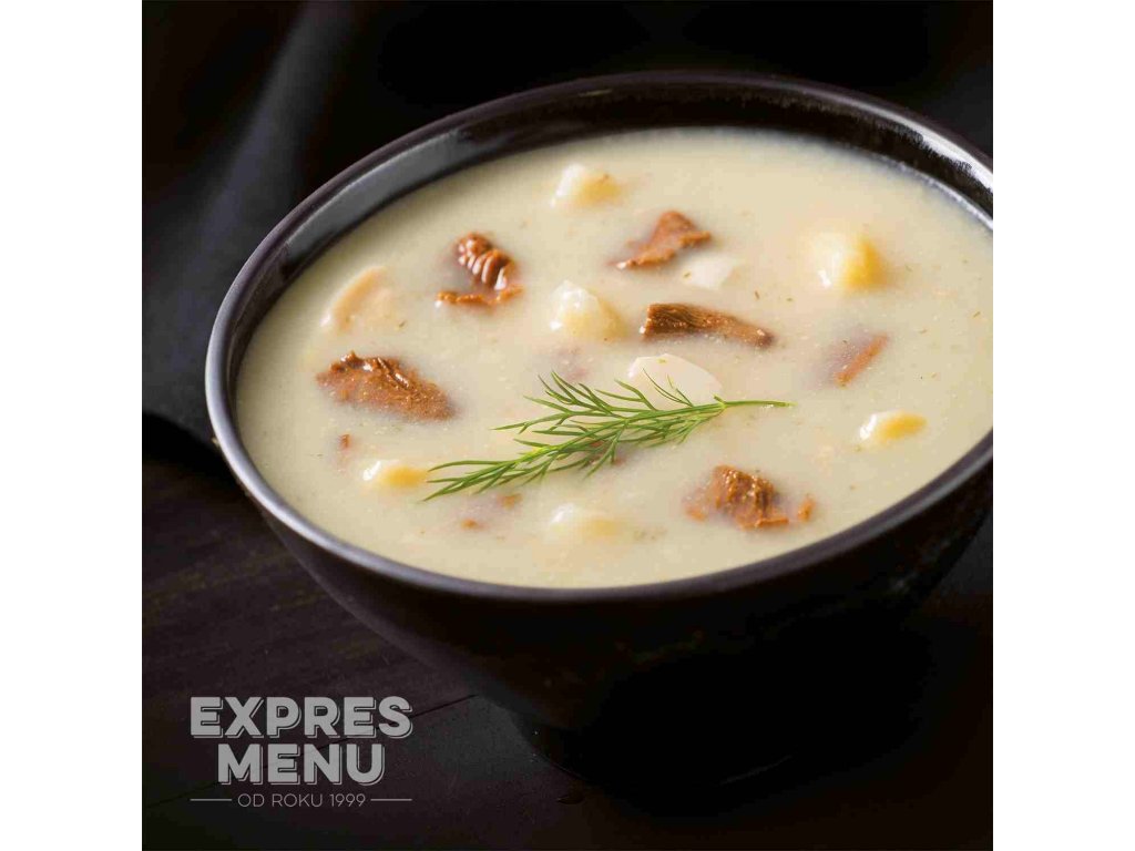 voda, brambory, smetana, vejce, houby lišky obecné (3 %), cukr, ocet, rýžová mouka, kukuřičná mouka, kopr sterilovaný (voda, kopr, ocet kvasný, cukr, sůl), sůl kamenná, pepř