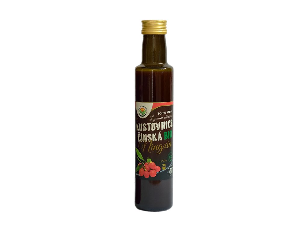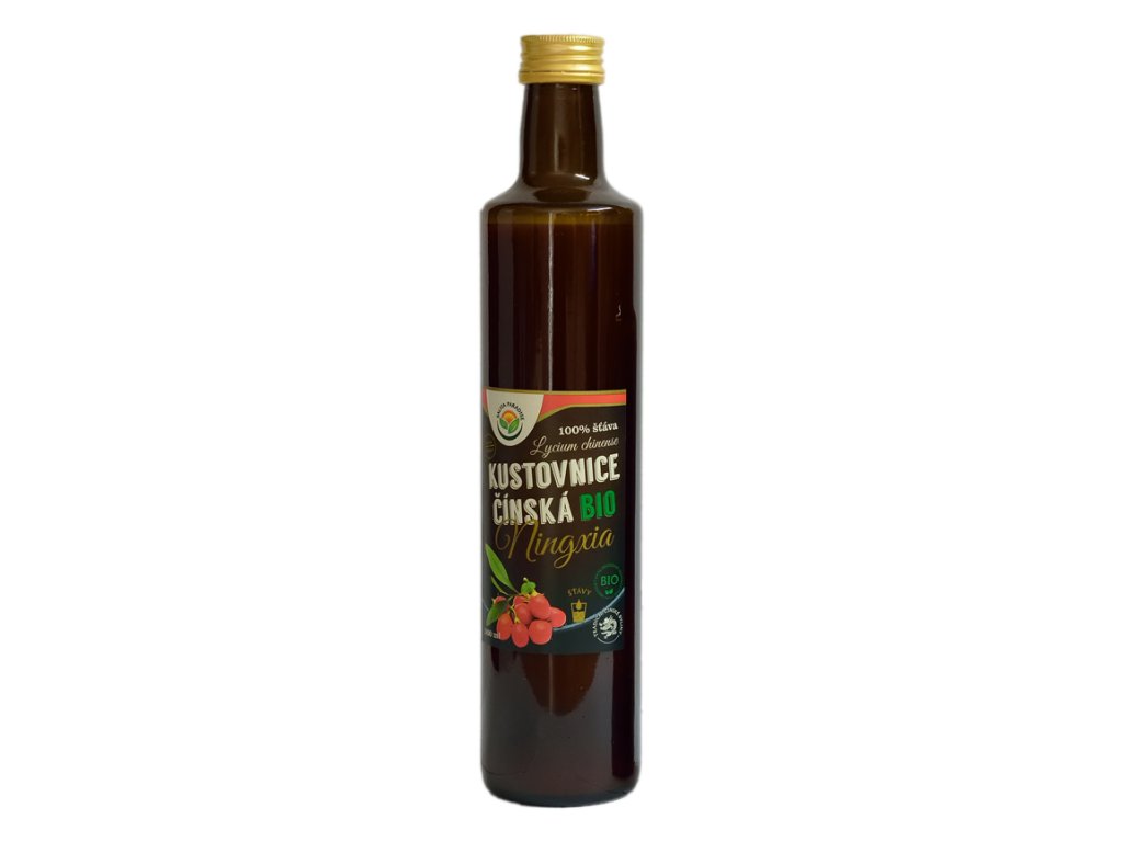 Jedná se o 100% BIO šťávu, která je získána z plodů kustovnice čínské. Získávání šťávy probíhá tím nejšetrnějším způsobem, tedy za studena. Při zpracování je kladen vysoký důraz na kontrolu a uchování mimořádných vlastností plodů. Na jeden litr 100% BIO šťávy je potřeba zpracovat 6 kg zralých plodů BIO kustovnice.