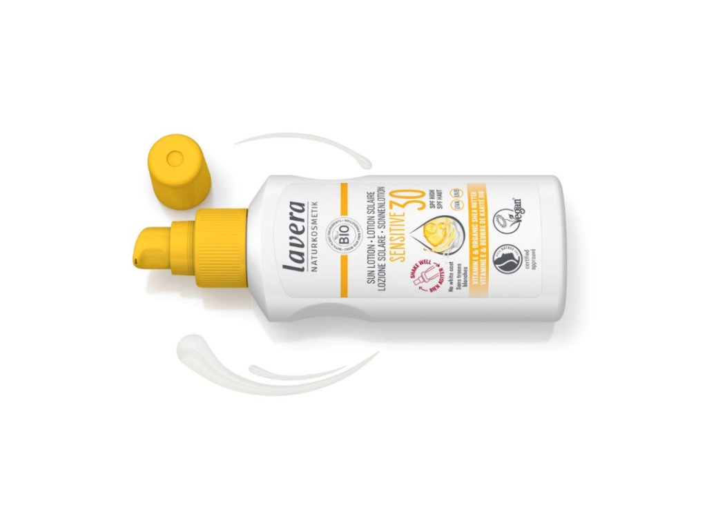 lavera Opalovací mléko Sensitiv SPF 30 (100 ml) nabízí okamžitou a efektivní ochranu před UVA/UVB zářením s voděodolnou formulí, vhodnou i pro velmi citlivou pokožku. Toto nově vylepšené složení bez oxidu titaničitého kombinuje minerální UV filtry a non-nano částice oxidu zinečnatého s pečujícími Bio oleji (slunečnicový a kokosový) pro hydrataci a prevenci proti stárnutí pleti. Je dermatologicky testováno, reef friendly, bez syntetických filtrů, silikonů, mikroplastů, umělých barviv a konzervantů.