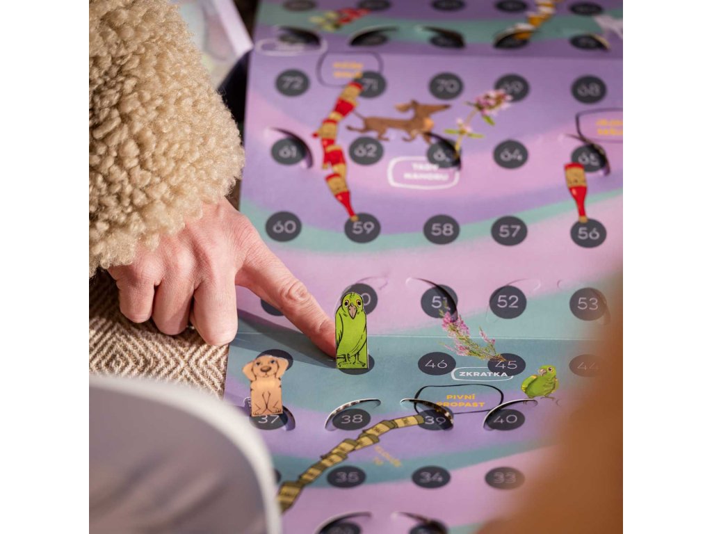 Společenská hra na zadní straně balení, ideální pro klidné večery doma – a to i bez alkoholu.