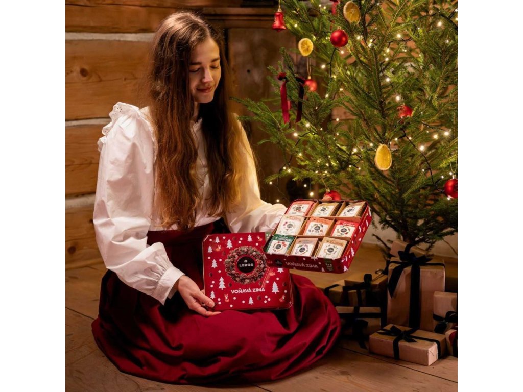 Vychutnejte si zimní pohodu s naší směsí bylinných čajů Voňavá zima, která je balena v nádherné plechové dárkové krabici. Tato směs přináší lahodné chutě a vůně, které zahřejí a potěší během chladných zimních večerů. Ideální dárek pro milovníky čaje.