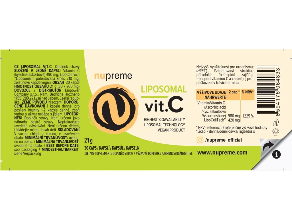 Revoluci ve světě doplňků stravy představují liposomální vitamíny. Liposomy jsou složené z fosfolipidů chránících funkční obsah před působením trávicího traktu. Fosfolipidy jsou pak součástí všech buněčných membrán, tělu jsou proto přirozené a mohou svůj jedinečný obsah doručit přímo až do buňky, se kterou se dokáží spojit. Díky tomu dosahují maximální využitelnosti, tak zvané biologické dostupnosti a nezatěžují jednotlivé orgány. Mohou být tekuté nebo sušené. Na první pohled zjistíme, že v tekuté formě jsou obvykle také konzervanty, zlepšovače chuti, barviva a po otevření musí být skladovány v lednici. K jejich výrobě je obvykle zapotřebí vysokých teplot a tlaku, což poškozuje vitamín C. Tyto nevýhody odpadají v případě praktických sušených produktů v kapslích a z uvedených možností se jeví jako top volba, jelikož nemají žádné potenciální vedlejší účinky a jejich stravitelnost, resp. využitelnost přímo pro buňky našeho těla je více než 95 %. I zde je však dbát pozornosti na výrobní postup, mnohdy se může jednat pouze o usušenou tekutou formu.