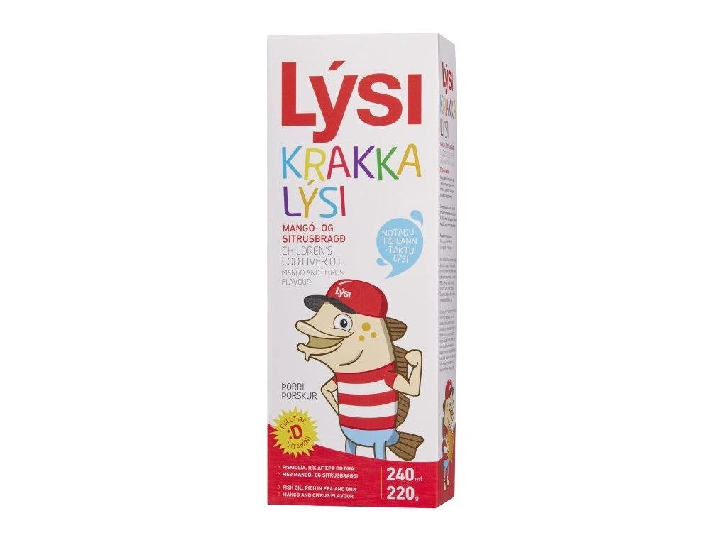 Lýsi Olej z tresčích jater olej a tuňáka Mango s vitaminy A, D, E pro děti 240 ml