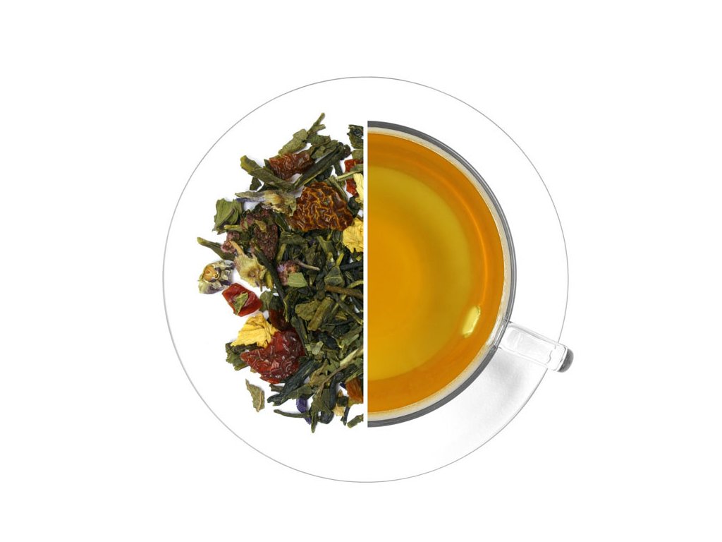 Popis: Malina - máta - Příprava: vodou o teplotě 70-80°C zalejte čaj v poměru 1,5 dl na čajovou lžičku. Pokud čaj louhujete v konvici, pak navíc 1 lžičku na konvici. Ponechte 2-3 minuty louhovat. Poté přeceďte.Složení: pravý zelený čaj Sencha, šípek, máta peprná (min.5,1%), aroma, maliny (min.3,3%), slunečnice, sléz. Může obsahovat stopy suchých skořápkových plodů.