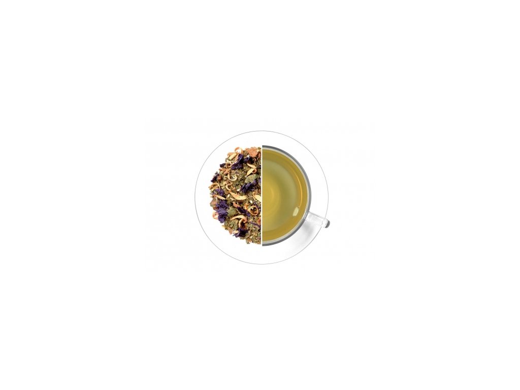 mate (min.72,2%), ginkgo, guarana, mango (mango, cukr, zpevňující látka chlorid vápenatý, regulátor kyselosti kyselina citrónová), pomerančová kůra, aroma, květy pomerančovníku, sléz. Může obsahovat stopy suchých skořápkových plodů.