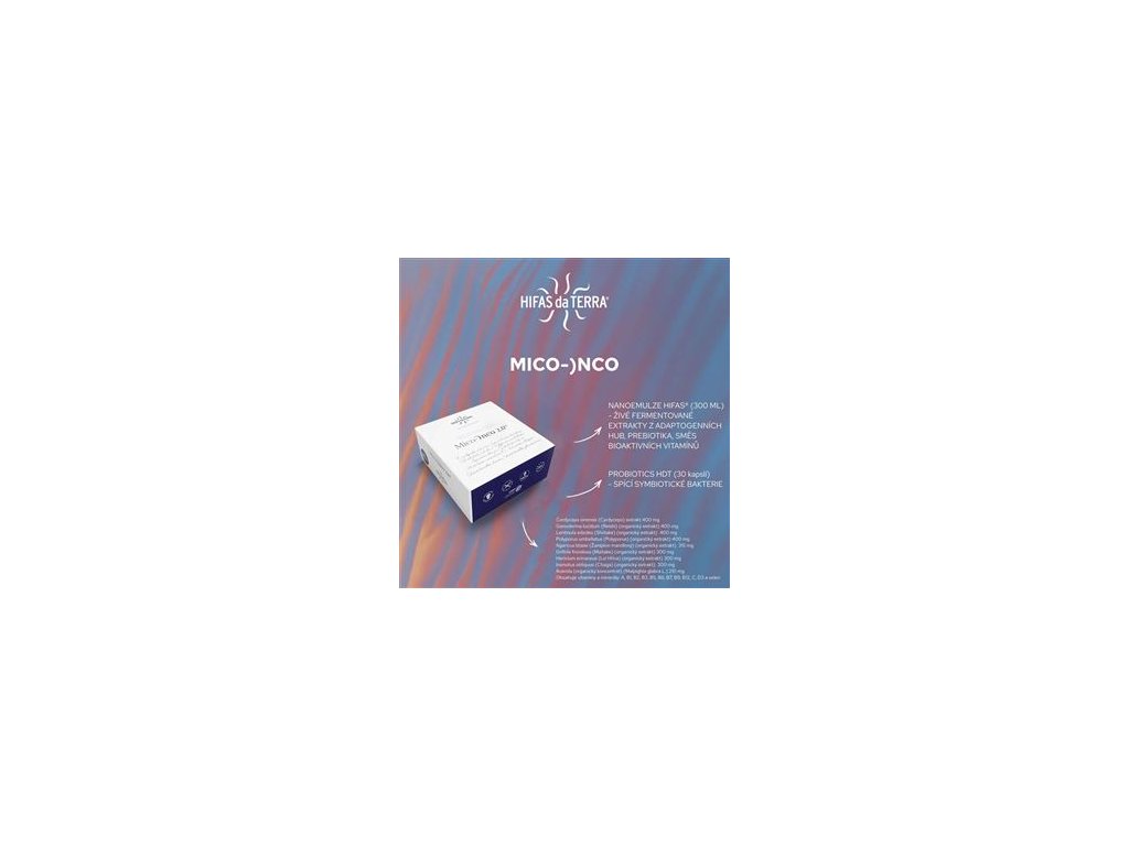 Receptura Mico-)nco je založena na symbióze silných bioaktivních extraktů z adaptogenních hub, které jsou upraveny procesem fermentace a následně převedeny do formátu nanoemulze, která zvyšuje biologickou dostupnost a vstřebávání až o 70 %.