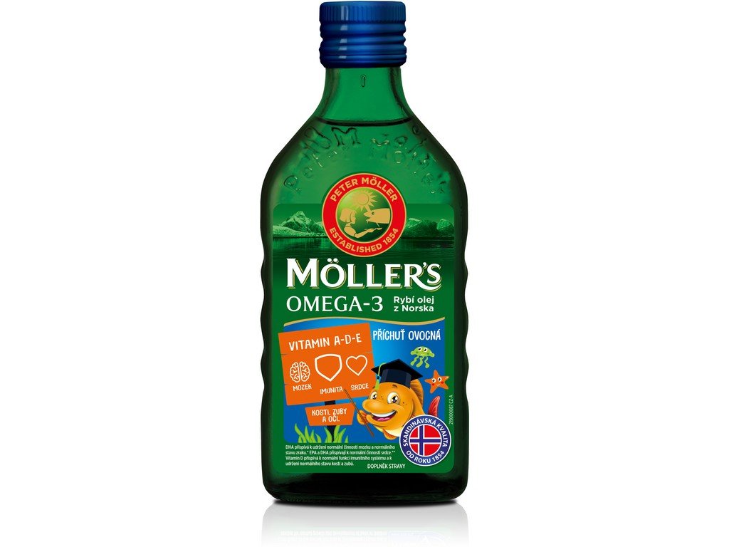 Rybí olej z tresčích jater s ovocnou příchutí speciálně pro děti. Möller's Omega 3 je bohatým zdrojem omega-3 nenasycených mastných kyselin DHA a EPA a zdrojem vitaminů A, D a E. Vyrábí se z čerstvých ryb z volného rybolovu v čisté oblasti Norského moře. Během zpracování dochází k odstranění nasycených tuků (přirozeně obsažených v tresčích játrech) a odstranění bílkovin (proto mohou rybí tuk užívat i osoby s alergií na ryby). Möller's Omega 3 ovocná příchuť je vhodný děti od 3 let i pro dospělé.
