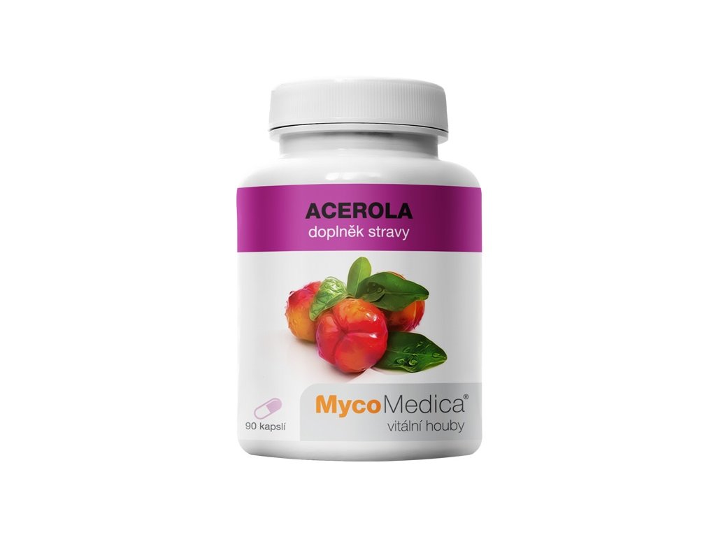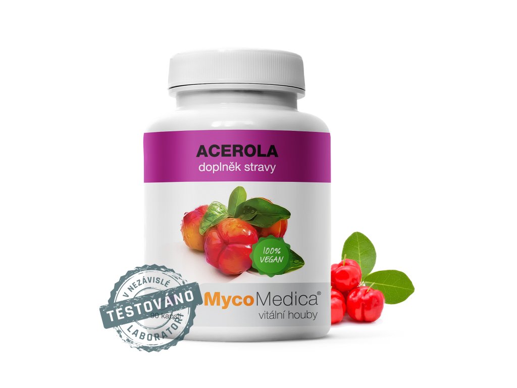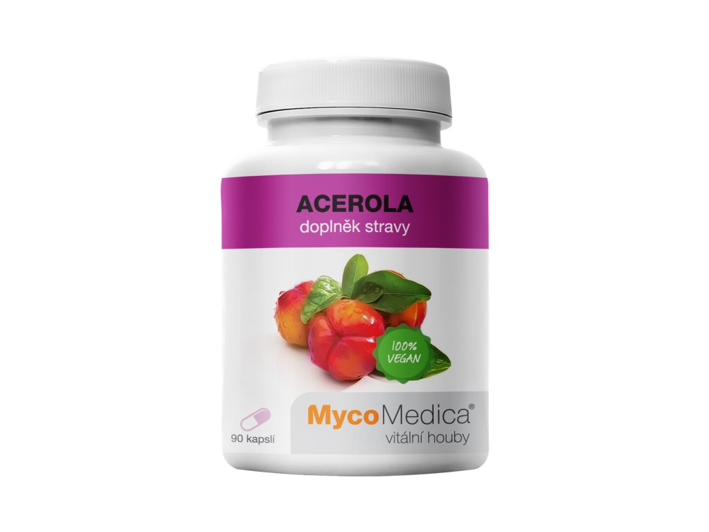 Acerola je přírodní zdroj vitamínu C, který zlepšuje vstřebatelnost účinných látek medicinálních hub lidským organismem. Pokud užíváte medicinální houby, doporučujeme přidat k nim 1 kapsli Aceroly.