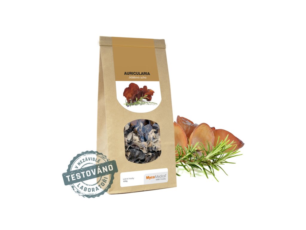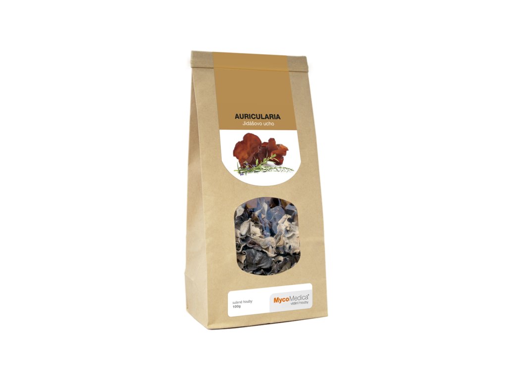 Bez Auricularie neboli jidášova ucha (Auricularia polytricha), která roste na celém světě na listnatých stromech, si asijskou kuchyni nelze představit. Za své české jméno Jidášovo ucho vděčí auricularia křesťanskému výkladu, podle něhož se Jidáš, zrádce Ježíše, oběsil na kmeni bezu, na němž posléze začaly růst houby tvaru ušního boltce. Důležitější než jméno, vzhled a legendy vztahující se k této houbě, jsou pro mykoterapeuta látky v ní obsažené, a to, jaké mají vitální účinky. Auricularia polytricha je jedna z nejstarších jedlých hub a v Číně se pěstuje již cca 1.500 let. Auricularia byla používána k léčebným účelům po staletí jak v Číně, tak v Evropě. Je užívána hlavně na posílení krevních cév a kardiovaskulárního systému.