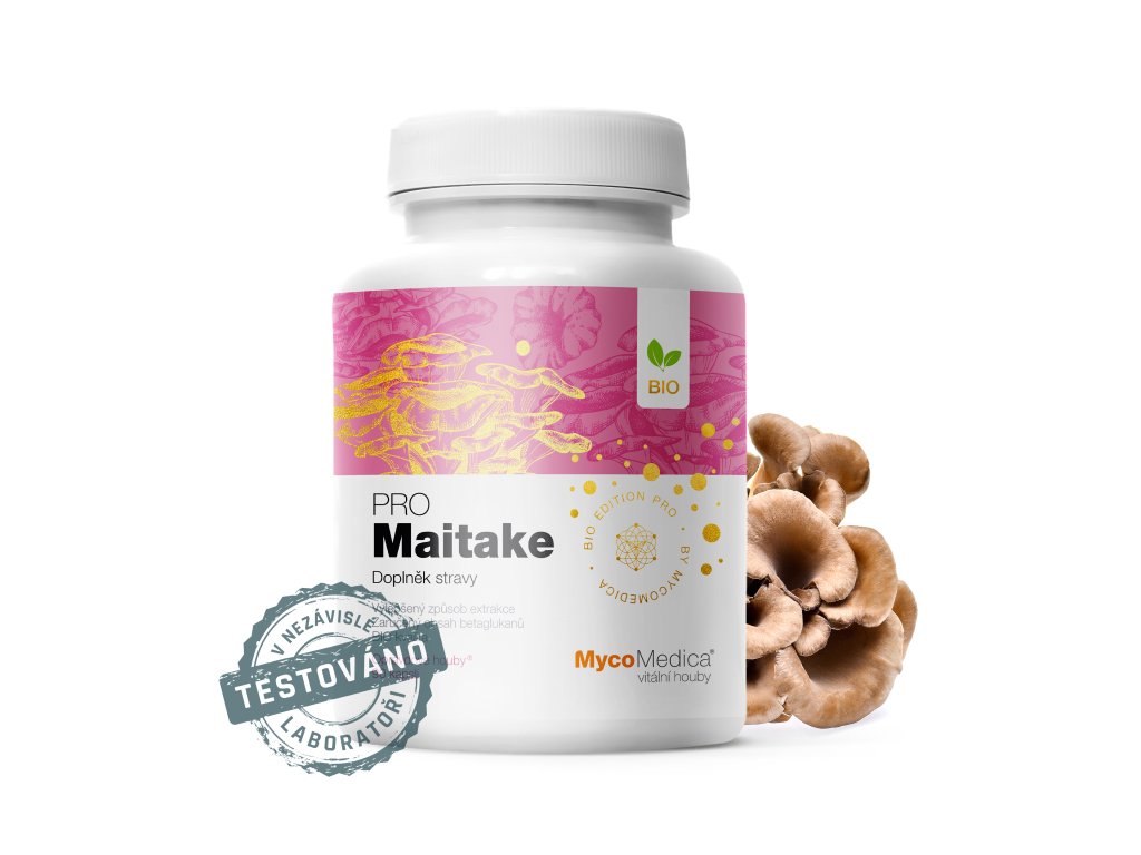 500 mg BIO Maitake (trsnatec lupenitý, Grifola frondosa) – kombinovaná extrakce z plodnice min. 35 % betaglukanů