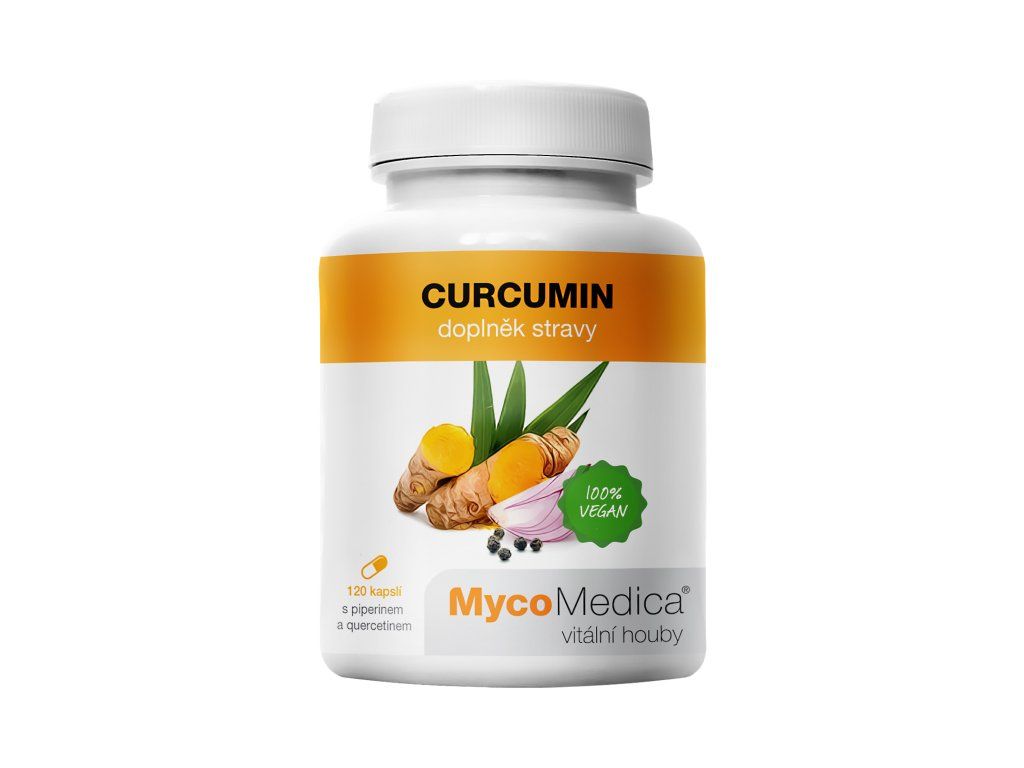 Curcumin sice není houba, přesto se domníváme, že díky své schopnosti rozbíjet blokády a zároveň zmírňovat zánět najde uplatnění souběžně s vitálními houbami u celé řady problémů. Používáme vysoce koncentrovaný curcumin pro co nesilnější účinek. Samotný curcumin je pro lidský organismus velmi špatně vstřebatelný, proto ke curcuminu přidáváme malé množství extraktu z pepře (piperin) a extraktu z cibule (quercetin), které zvyšují vstřebatelnost až o 2000 %. Piperin a quercetin zablokují v trávicím systému enzym, který by jinak velmi rychle rozštěpil curcumin na množství neúčinných metabolitů. Tímto způsobem se nenarušený curcumin dostane rychleji do krevního řečiště a k samotným buňkám.
