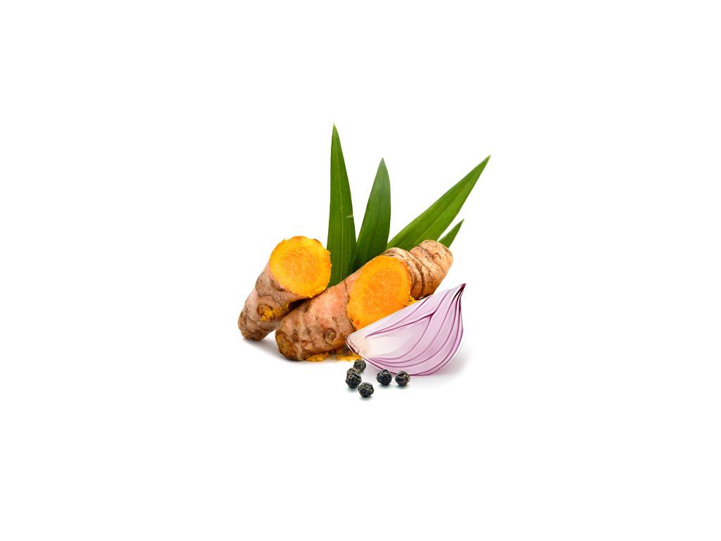 300mg Curcumin 95% extrakt z kurkumy dlouhé (Demethoxycurcumin: 15-25 %, Bisdemethoxycurcumin 2,5-6,5 %), 4mg Piperin 95% extrakt z pepře, 40mg Quercetin 30% extrakt z cibule