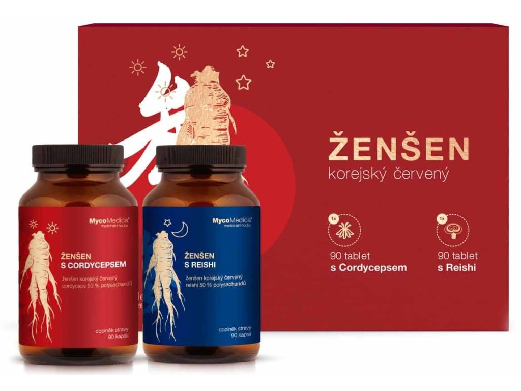 MycoMedica Korejský ženšen pravý červený s Cordycepsem 90 kapslí + s Reishi 90 kapslí