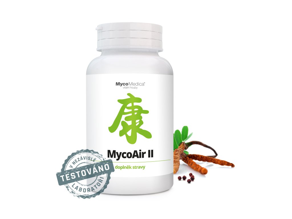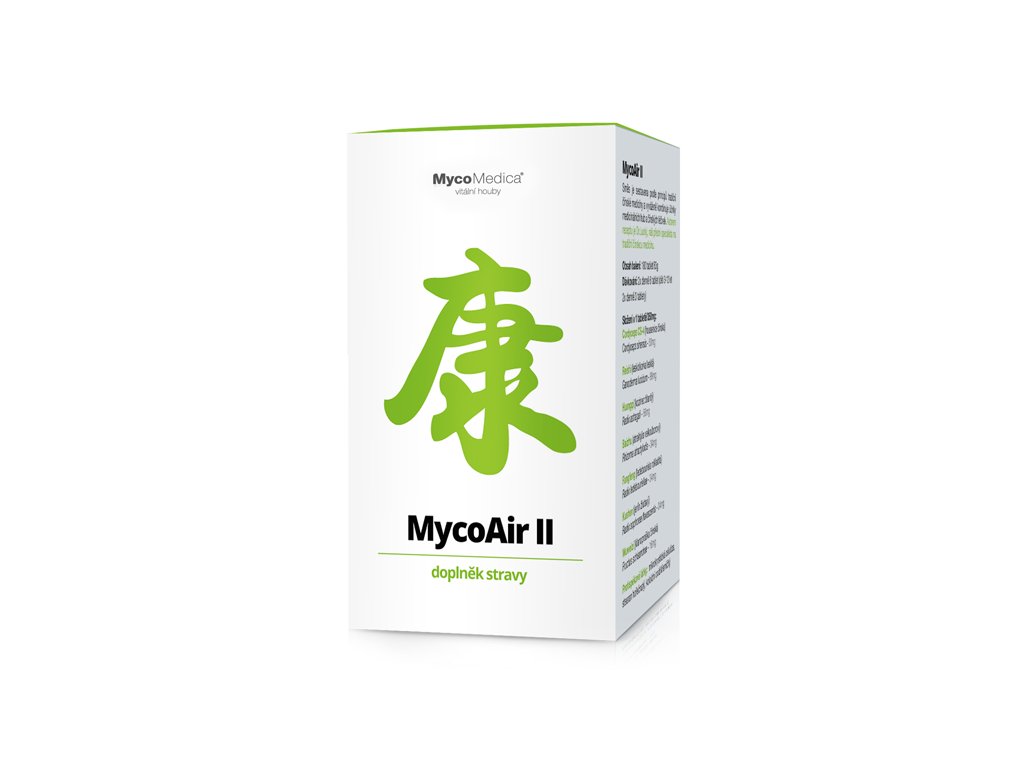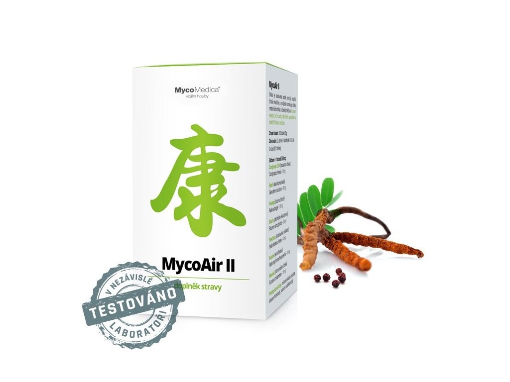 MycoAir II v sobě obsahuje jedinečnou kombinaci imunomodulačního působení dvou vybraných hub a pěti čínských léčivek. Produkt jako celek má preventivní působení. Proto si musí poradit s několika aspekty, provázejícími astmatické a alergické potíže. Kombinace kozince, atraktylu a ledebouriely předchází častým infektům a má podpůrný vliv na imunitu. Tyto tři byliny spolu koexistují již mnoho staletí a tvoří bylinnou kombinaci s názvem Nefritový větrolam neboli Obranný val.