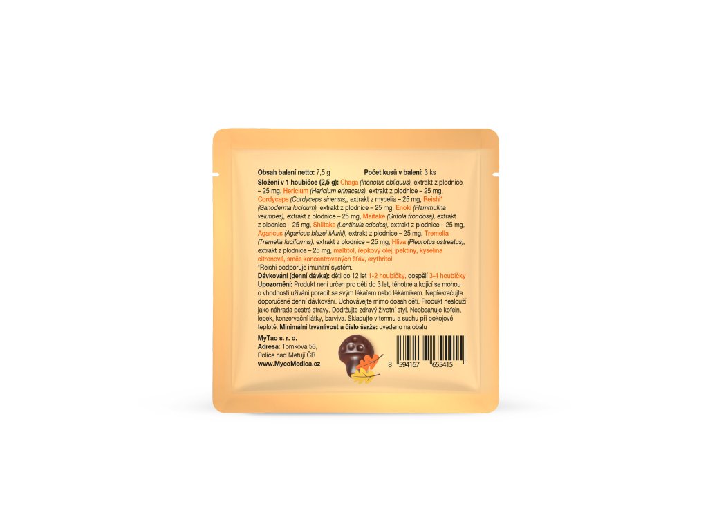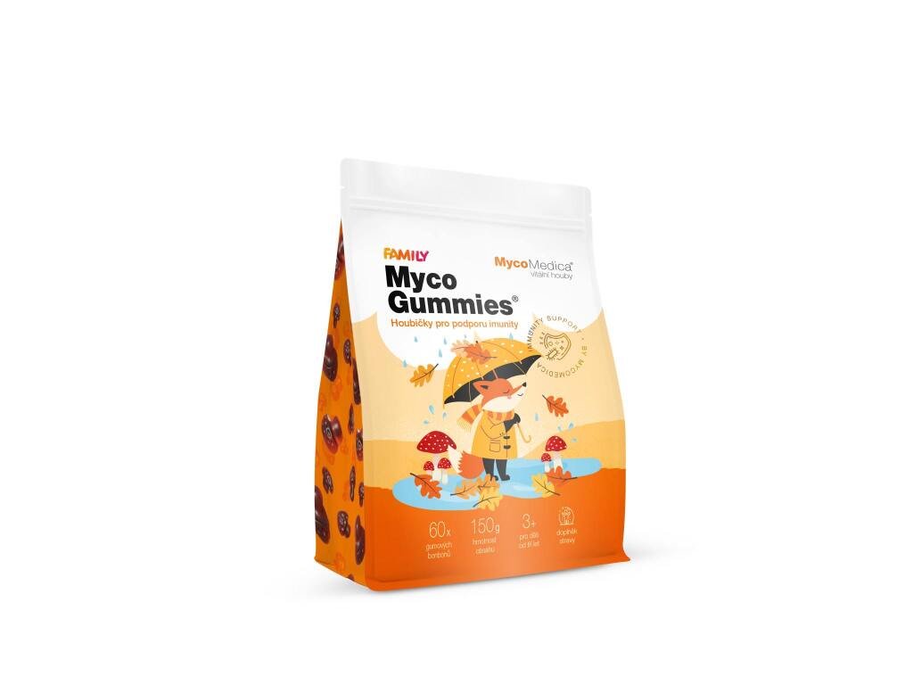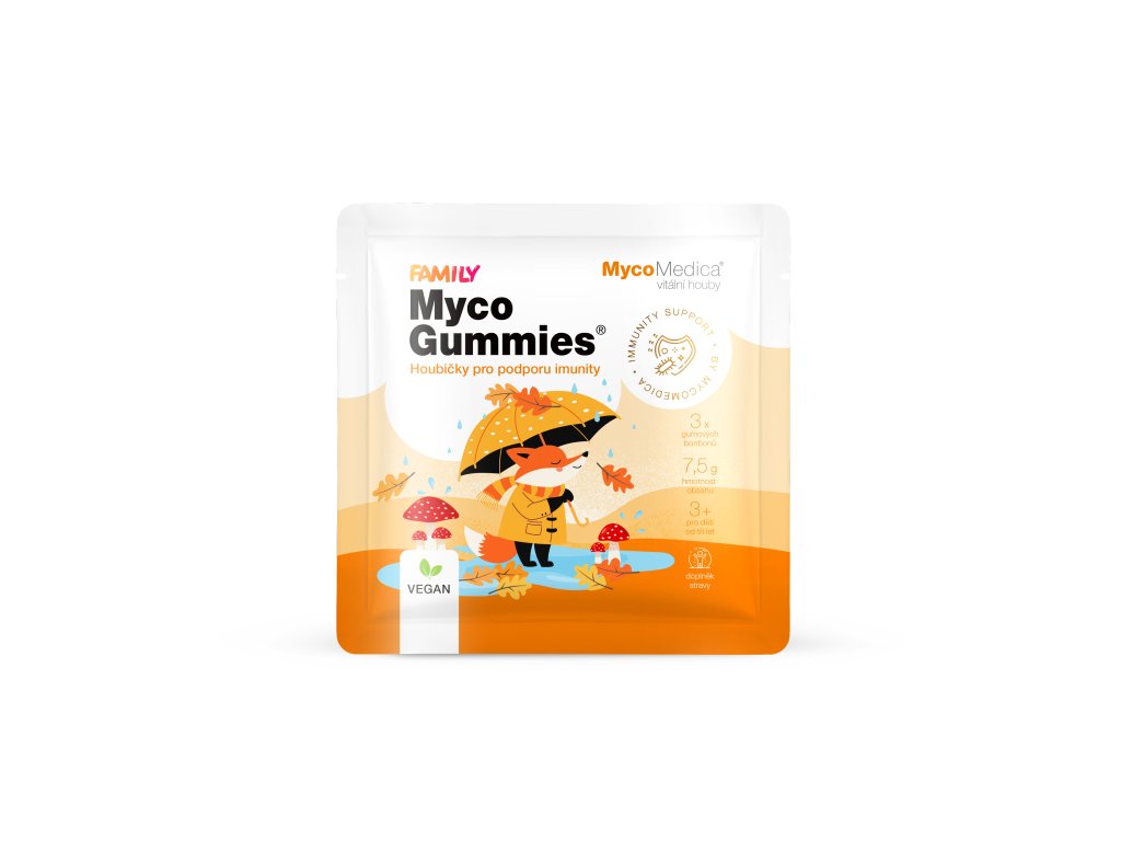MycoGummies jsou chutné bonbonky obsahující 10 extraktů z vitálních hub - skvělá alternativa ke kapslím nejen pro malé děti. Obsahují také Reishi, která přispívá k přirozené obranyschopnosti organismu. Výborná chuť a hravý tvar houbiček si získají celou rodinu. Bez přidaného cukru. Bez laktózy. Bez umělých barviv a konzervantů. Vhodné pro vegany.Doplňkové parametry