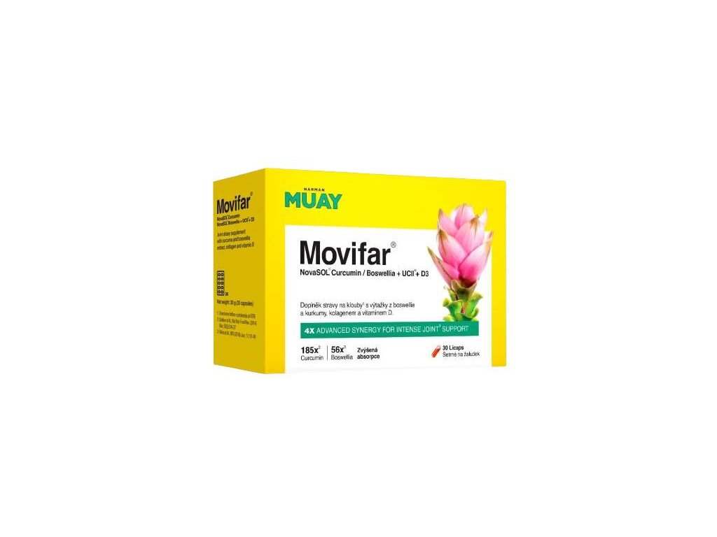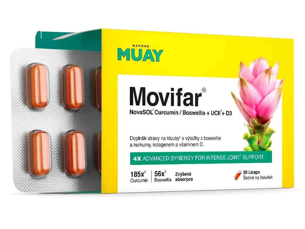Namman Muay Movifar je inovativní doplněk stravy s Novasol® technologií pro maximální vstřebávání boswellie a kurkumy, s UC-II kolagenem a vitaminem D.