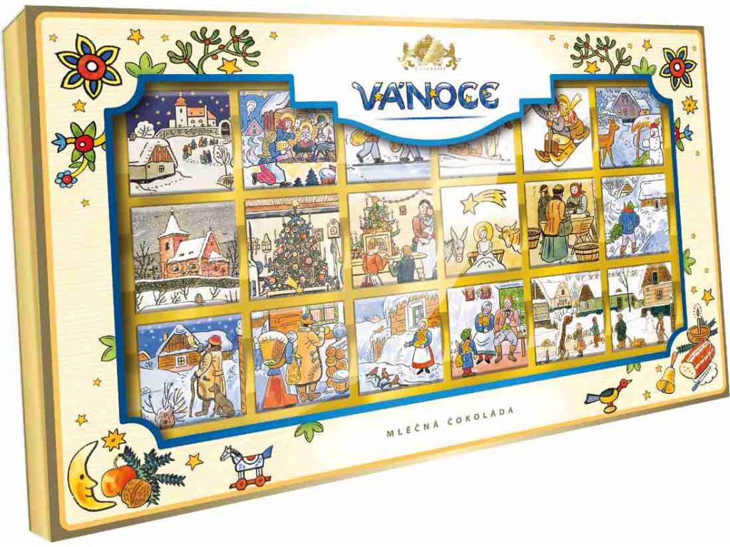 Krásný čokoládový dárek, kterým potěšíte. Darujte ryze českou čokoládu s motivem Lady. Ladovské motivy na čokoládách patří k těm nejoblíbenějším. Tyto čokoládové neapolitánky lze také pověsit na stromeček. Ať už Ladovu čokoládu darujete babičce, kamarádce či kolegyni zaručeně je potěšíte. Dárkové balení čokolády Lada se hodí také jako vánoční dárek pro zaměstnance i obchodní partnery.