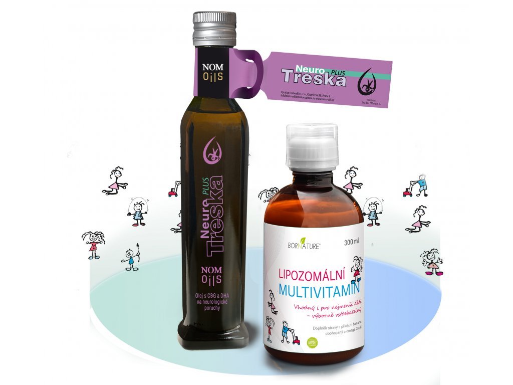 Zvýhodněné balení doporučené kombinace produktů NEURO treska PLUS a Lipozomální dětský multivitamín.