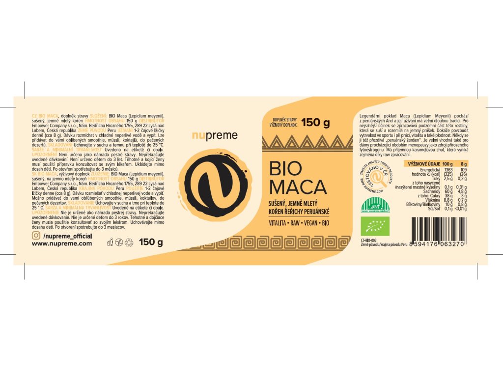 Nupreme Maca BIO (Balení: 150 g) DMT: 28.02.2026