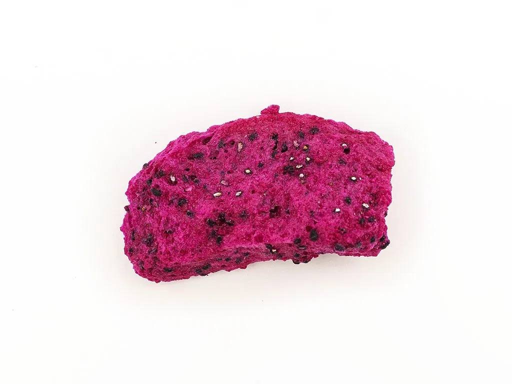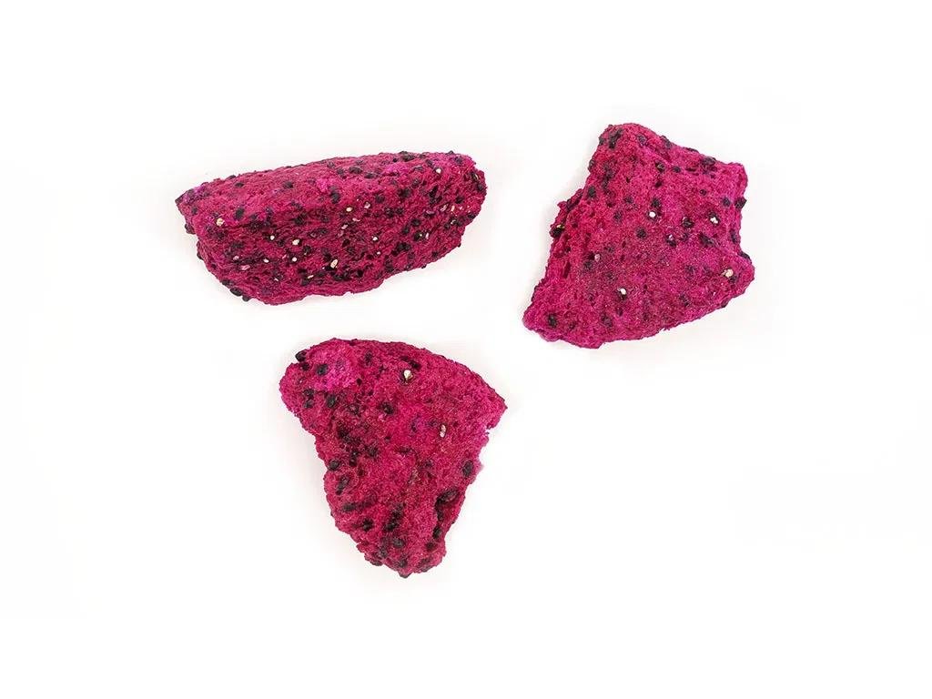 Dračí ovoce (pitahaya) není v našich krajinách příliš známé. Ovoce opředené mýtickými příběhy o dracích roste na kaktusu v tropických oblastech Asie a latinské Ameriky. Chuť dračího ovoce je nasládlá, připomíná kombinaci melounu, hrušky a kiwi. Díky sušení mrazem zůstane chuť stejně intenzivní jako u čerstvých plodů. Lyofilizace zachová také přirozenou vůni i barvu a navrch dodá ovoci dokonalou křupavost.