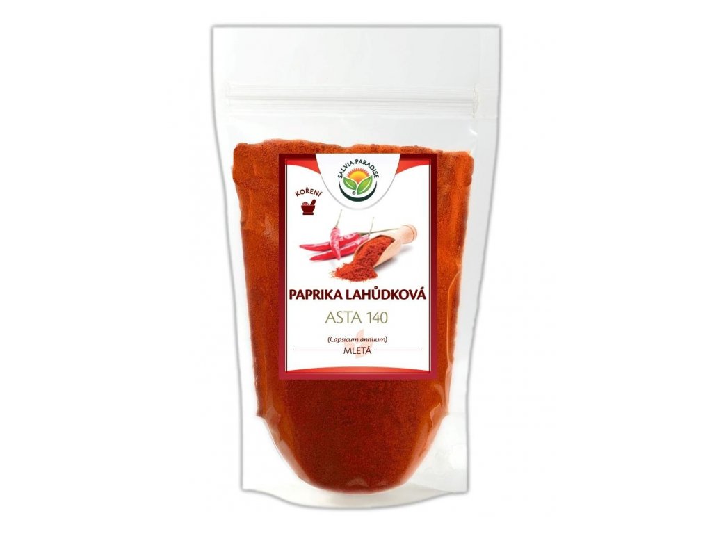 Salvia Paradise® vám přináší lahůdkovou papriku s označením ASTA 140, vysoce kvalitní a chutnou mletou papriku, kterou využije každá hospodyně. Zajímavé je, že schopnost barvivosti a předání chuti je pozorovatelná v celém rozsahu především v tucích. Rozpuštěním ve vodě se nedosáhne požadovaného efektu.