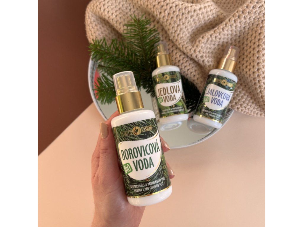 Objevte pomocníka pro každodenní péči o pleť se sklony k akné, který ji osvěží, dočistí a zklidní. Bio Borovicová voda si vás získá svou dřevitou vůní i jemně stahujícím účinkem. Hlavní benefity: Čistí a tonizuje bez pocitu vysušení Pomáhá redukovat začervenání Vhodná zejména pro citlivou a ekzematickou pleť Revitalizuje a projasňuje Popis: Borovice je tradičně využívaná pro své očistné vlastnosti, pomáhá navracet pokožce rovnováhu a svěží vzhled. Bio Borovicová voda vzniká parní destilací jehličí borovice horské (Pinus mugo) v BIO kvalitě. Je ideální pro každodenní dočištění všech typů pleti – zejména mastné, problematické nebo ekzematické. Napomáhá stahovat póry, osvěžuje a zklidňuje pokožku po čištění, holení nebo opalování. Díky přírodnímu složení bez alkoholu je vhodná i pro citlivou pleť. Lze ji používat i na tělo nebo jako lehkou osvěžující mlhu během dne. Použití: 1. Péče o pleť: Vyčistěte pleť pomocí Bio Levandulového čisticího gelu PURITY VISION®. Následně aplikujte Bio Borovicovou vodu jako tonikum. Po aplikaci oblíbeného séra PURITY VISION® nastříkejte Borovicovou vodu pro vytvoření hydratačního základu před aplikací másla nebo oleje PURITY VISION®.TIP: Kombinujte s Bio Detoxikační maskou PURITY VISION® pro rozjasnění pleti. 2. Péče o tělo: Aplikujte na podrážděnou pokožku po opalování, holení nebo depilaci Obklady s vůní borovice lesní podporují příjemnou atmosféru a pocit uvolnění. 3. Péče o vlasy: Aplikujte na vlasovou pokožku pro extra hydrataci a nastříkejte do konečků pro usnadnění rozčesávání. Pro extra výživu pokožky hlavy kombinujte s Bio Ricinovým olejem, který poté vmasírujte do pokožky hlavy TIP: Vhodné i pro péči o dětskou pokožku hlavy. Použijte s Bio Dětským tělovým máslem pro extra hydrataci. 5. Pro muže: Zklidňuje pleť po holení, osvěžuje vousy i tělo, dodává zemitou vůni. 6. Aromaterapie: Přírodní vůně borovice provoní prostor a přispívá k pocitu uvolnění a pohody. Upozornění: I když Bio Borovicová voda je 100% přírodní, může být pro vás nebo pro vaše děti dráždivá. Nejprve ji proto vyzkoušejte na předloktí. V případě, že nesedne, vyzkoušejte jinou Květinovou vodu. Výroba: Lesní vody PURITY VISION® vyrábíme s láskou a respektem k lesům. Díky parní destilaci si lesní vody uchovávají vysokou koncentraci přírodních látek jako jsou silice, minerály a vitamíny. U Borovice lesní používáme při výrobě jehličí a větvičky, vzniká tak jedinečná Bio Borovicová voda, která vám vykouzlí úsměv na tváři při každém použití. Certifikace, které ručí za tu nejvyšší kvalitu produktu: NATRUE Certifikát NATRUE je mezinárodní certifikace, která dbá na ochranu a propagaci skutečné přírodní a Bio kosmetiky. Produkty označené logem NATRUE splňují ty nejvyšší požadavky na kvalitu a udržitelnost. CRUELTY FREE & VEGAN Certifikát udělovaný společností PETA zajišťuje, že naše produkty nejsou testovány na zvířatech a neobsahují žádné látky, které pochází ze zvířat (včelí vosk, lanolin nebo karmín (barvivo získávané z hmyzu). V PURITY VISION® si vážíme všech živých bytostí, a proto je proti našemu přesvědčení testování na zvířatech.<h2>Složení: </H2><br /><DIV id=Složení><P><STRONG>INCI:</STRONG> Pinus Sylvestris Leaf Water* (Bio Borovicová Voda), Limonene**. </P><br /><P>*Z kontrolovaného ekologického zemědělství. </P><br /><P>** Přirozená součást vody z Borovice Lesní. </P><br /><P><STRONG>Skladování:</STRONG> Květinové vody uchovávejte při pokojové teplotě a mimo dosah přímého slunečního záření. V letních měsících nebo při vyšších teplotách doporučujeme skladovat v lednici. </P></DIV></BODY>