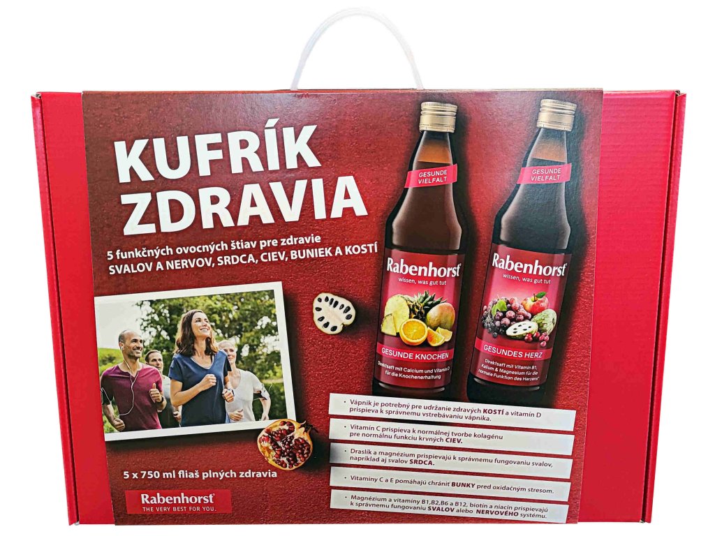 Tato pečlivě sestavená sada značky Rabenhorst přináší pět cílených ovocných šťáv, které doplňují důležité vitamíny, minerály a přírodní extrakty. Každá varianta je navržena tak, aby podpořila konkrétní oblast – od zdraví kostí přes funkci srdce a cév až po správnou činnost svalů a nervové soustavy a ochranu buněk před oxidačním stresem. Šťávy jsou z přímého lisování či kvalitního ovocného pyré, bez zbytečných přídatných látek, s přirozenou chutí ovoce.