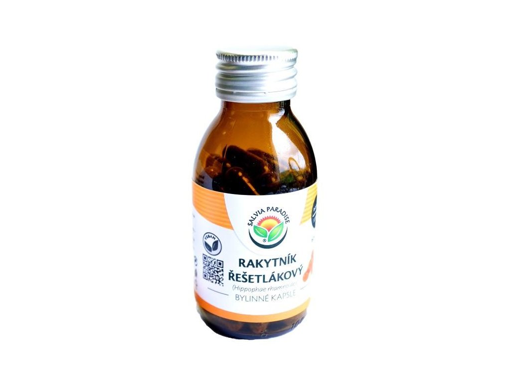 Složení: 100% Hippophae rhamnoides fructus, 300 mg/tobolka. Obal kapsle HPMC (hypromelosa). Kapsle jsou rostlinného původu, vhodné i pro vegetariány či vegany.