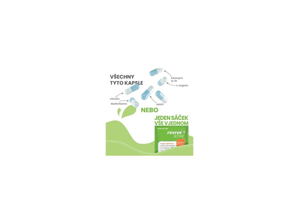 Revive Active je komplexní produkt z kategorie vše v jednom, s obsahem všech nejdůležitějších doplňků stravy v jednom produktu a v jedné denní dávce!