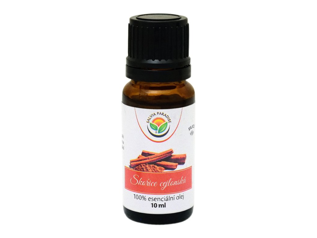 100% přírodní esenciální olej z cejlonské skořice s charakteristickou kořeněnou vůní