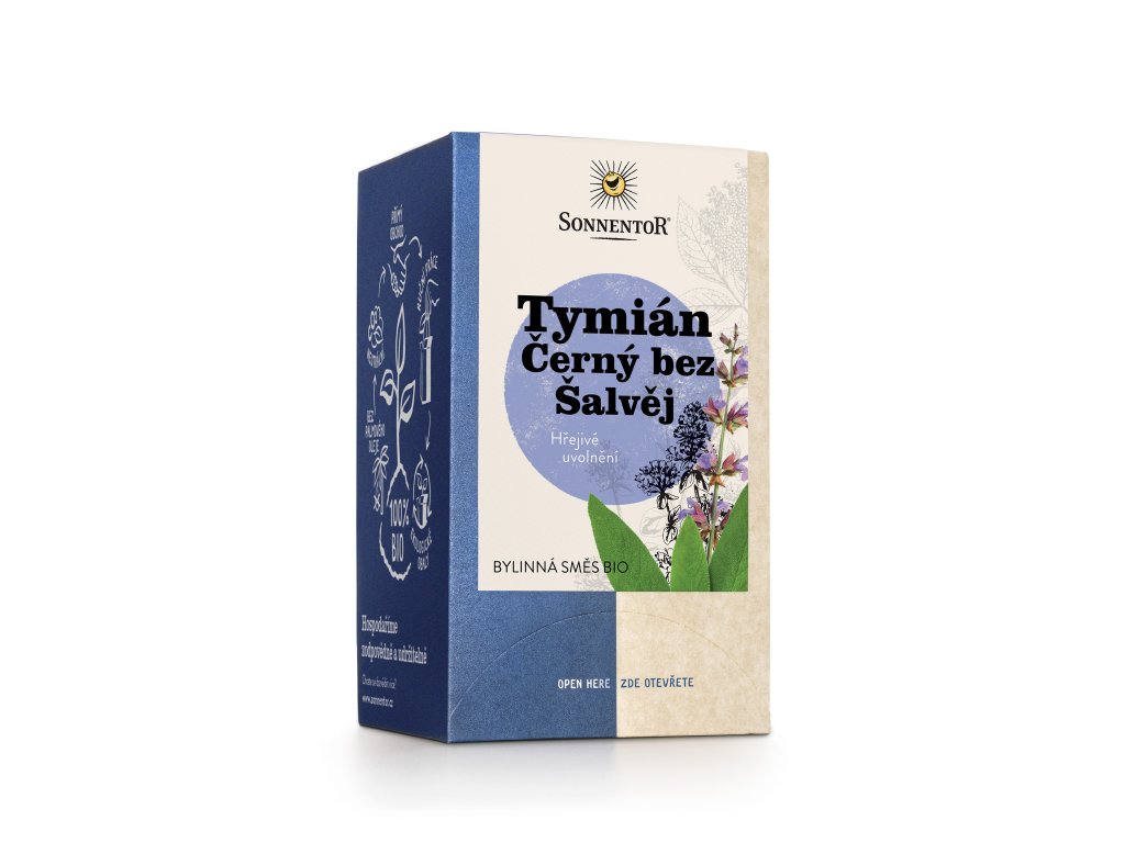Černý bez květ bio (47%), Tymián bio (36%), Šalvěj bio (17%)
