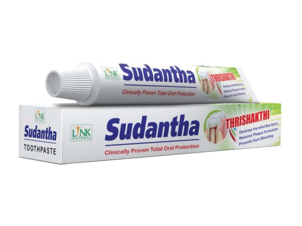 Bylinná zubní pasta pro kompletní ústní hygienu a péči o dásně bez fluoru. Pasta obsahuje extrakty z ájurvédských bylin (Vasaka, Opíhled skvělý, Vrcholák myrobalánový a další) známé svým antibakteriálním působením. Pravidelné čištění pastou Sudantha pomáhá v prevenci zubního kazu, odtsraňování zubního kamene a péči o dásně.