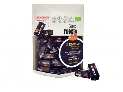 Bio veganské karamely s lékořicí. Jednotlivě balené, super sladké veganské karamelky s tou správnou dávkou krémovitosti, křupavosti a plné chutě, kterou ocení i ti nejnáročnější jedlíci. Karamelky od značky Super Fudgio jsou vyráběny z surovin v bio kvalitě, přičemž veškeré zbytečné ingredience byly z receptury vyškrtnuty. V karamelkách proto nenajdete žádná aditiva, barviva, stabilizační látky, ani konzervanty!