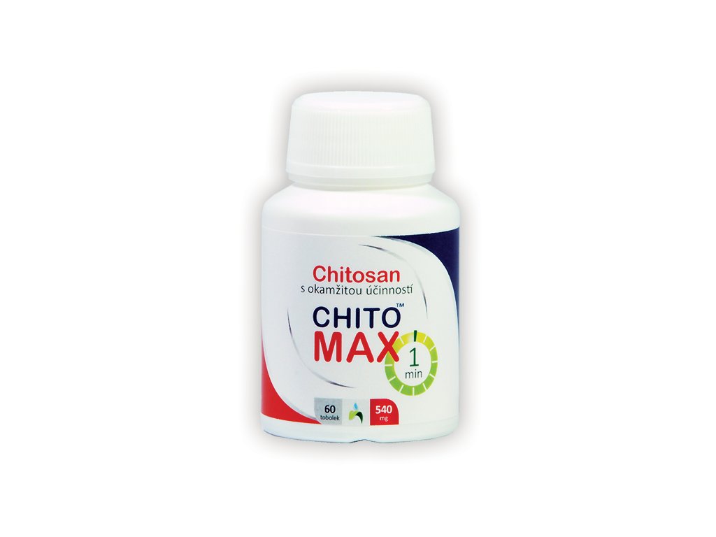 Chitomax = Chitosan s okamžitou účinností. Chitomax je vysoce kvalitní chitosan, který byl speciálním patentovaným postupem upraven tak, aby se zlepšila jeho rozpustnost v žaludeční kyselině a zvýšila jeho schopnost vázat tuky. Je až 5x účinější než běžné produkty z chitosanem.