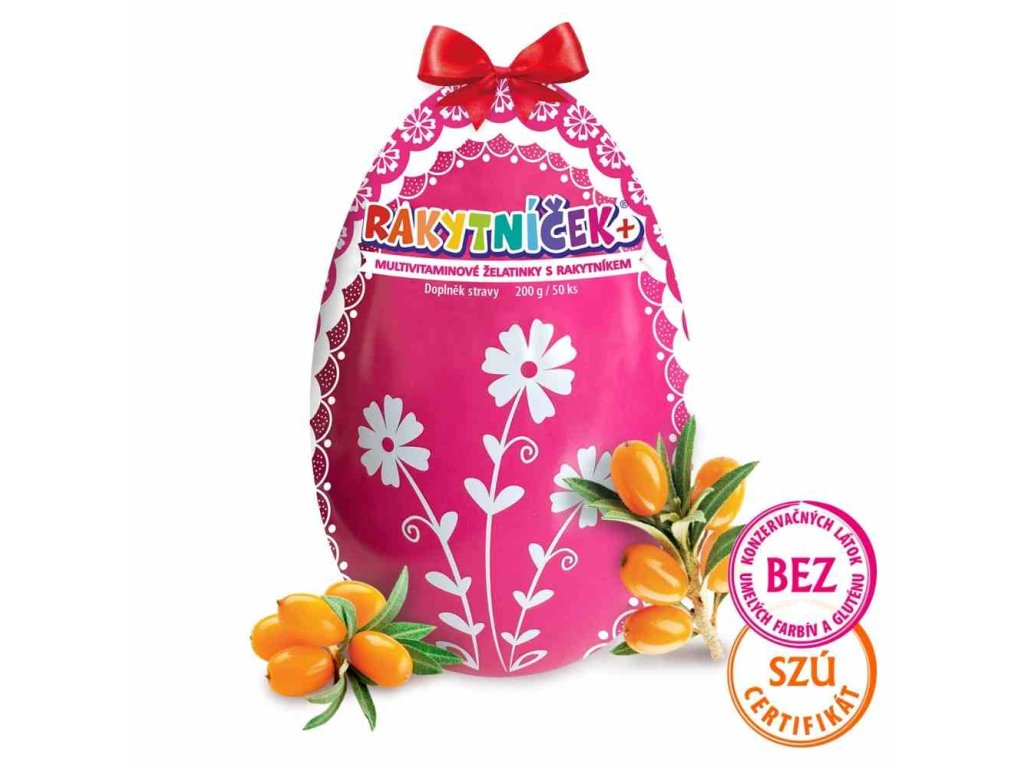 Multivitaminové želatinky Rakytníček obsahují směs ovocných koncentrátů s rakytníkem a vitaminy. Děti si je zamilují nejen díky šťavnaté ovocné chuti, ale i veselým tvarům. Rakytník podporuje přirozenou obranyschopnost stejně jako obsažený vitamin B12, který navíc přispívá ke snížení míry únavy a vyčerpání.