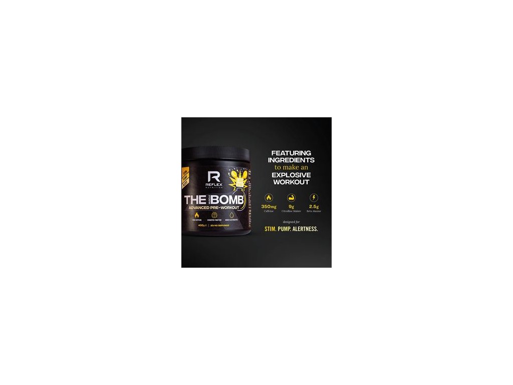The Muscle Bomb představuje novou vývojovou verzi před-tréninkových stimulátorů v kategorii hardcore. Nejsilnější pre-workout značky Reflex Nutrition je speciálně formulován pro intenzivní tréninkovou aktivitu na nejvyšší úrovni. Plně profesionální formulace produktu je vytvořena na základě dlouholetých zkušeností výrobce v oblasti silového a objemového tréninku s tradicí od roku 1996! To vše v kombinaci s nejnovějšími vědeckými poznatky a studiemi.