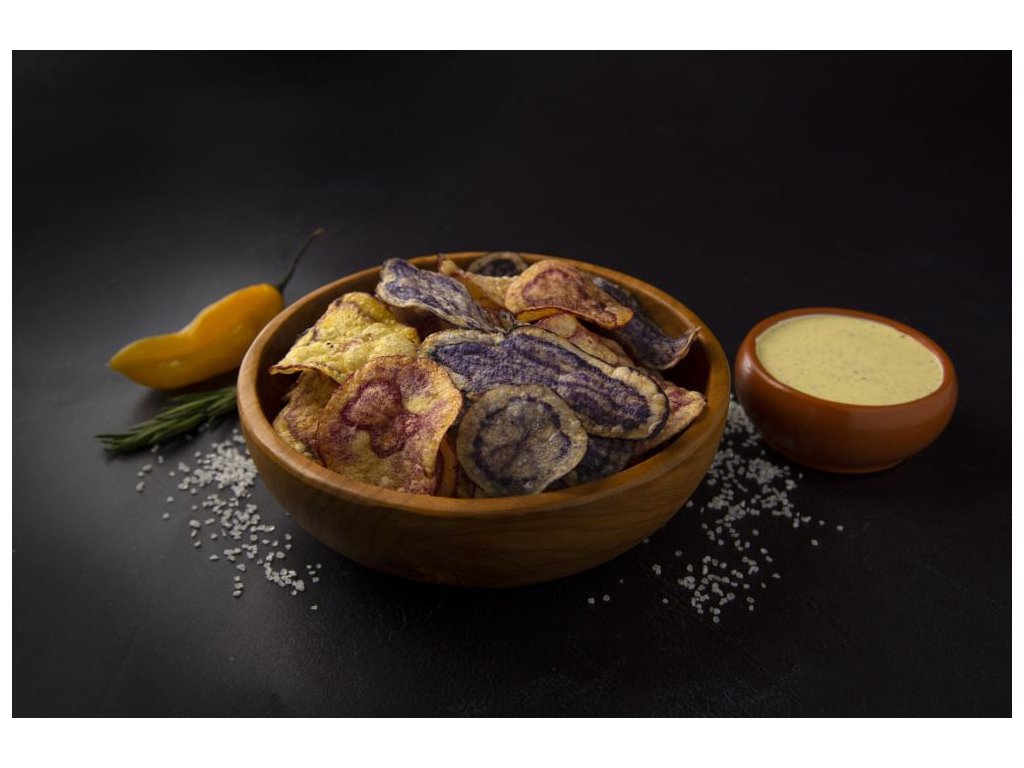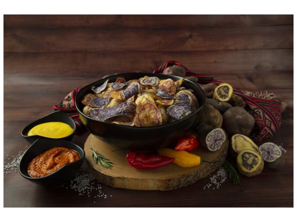 Složení: Původní peruánské brambory, slunečnicový olej s vysokým obsahem kyseliny olejové, růžová sůl Maras.