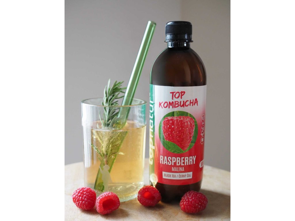 Voda z plzeňského kraje, výluh z BIO černého čaje (92 %), BIO třtinový cukr, kultury kombuchy (kvasinky a bakterie mléčného kvašení), přírodní aroma