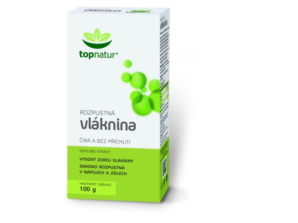Rozpustná vláknina je přírodní produkt, který obsahuje částečně hydrolyzovanou vlákninu z rostliny guar. Vláknina je čiré konzistence naprosto neutrální chuti. Je naprosto neutrální chuti a zcela rozpustná ve vodě. Příznivě ovlivňuje proces zažívání.