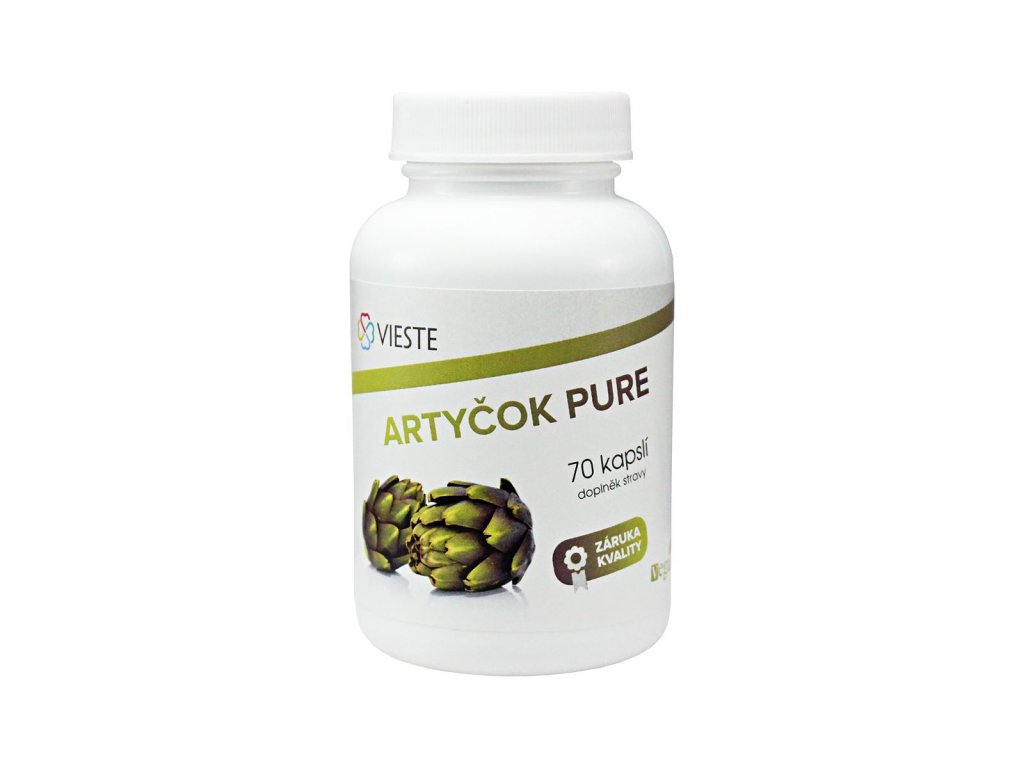 Vieste Artyčok Pure je doplněk stravy s výtažkem z artyčoku, který napomáhá dobrému trávení, přispívá k normální funkci jater a podporuje detoxikaci organismu. Tato dekorativní zelenina má také blahodárný vliv na udržení normální hladiny krevních lipidů a je vhodným podpůrným prostředkem při snižování tělesné hmotnosti.