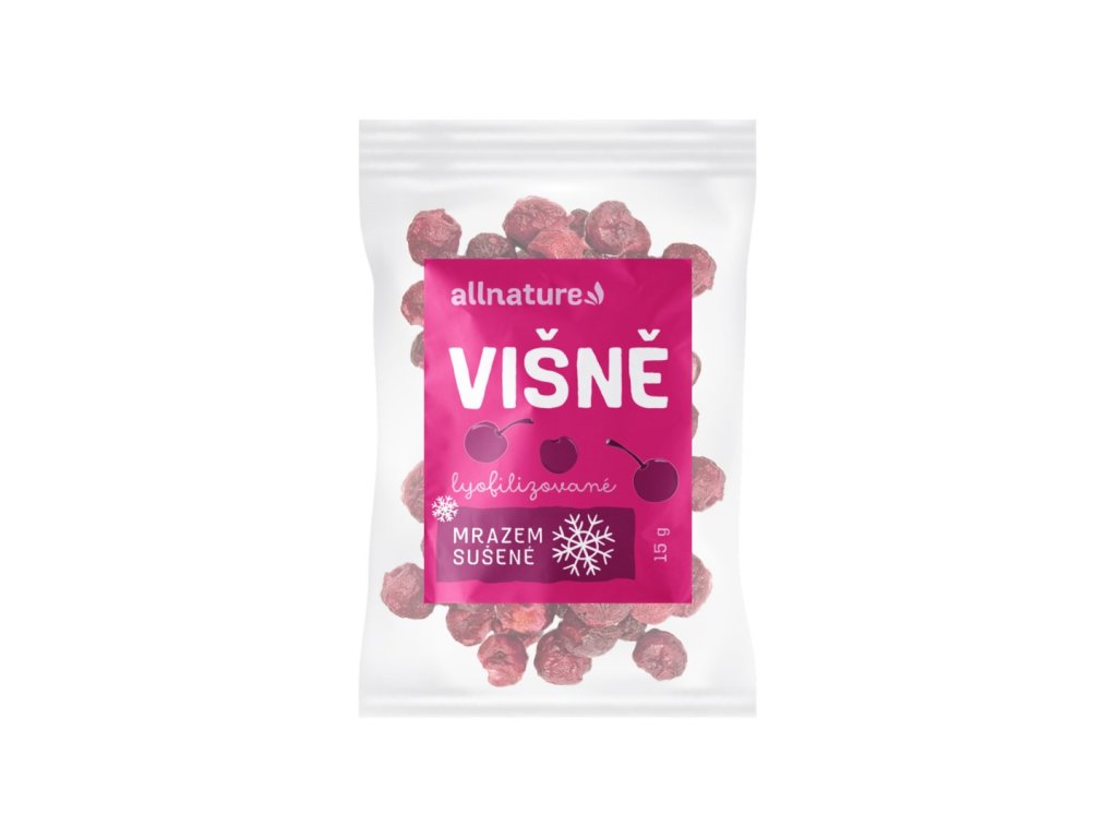 Višně sušené mrazem, neboli lyofilizované višně Allnature si díky šetrnému procesu lyofilizace zachovávají barvu, chuť, vůni a živiny čerstvých višní. Proces lyofilizace spočívá v prudkém zmrazení a následném pomalém sušení ve vakuu, které višeň zbaví 95 % vody. Lyofilizované višně Allnature nejsou dodatečně doslazovány. Ideální do jogurtů, musli, kaší, nejrůznějších dezertů nebo i jen tak samotné. Při správném skladování mají velmi dlouhou trvanlivost.